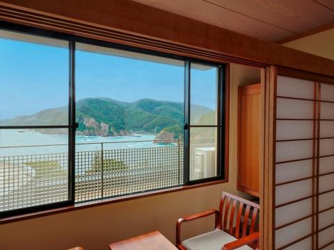 眼下に広がる日本海が一望出来るオーシャンビュー和室。