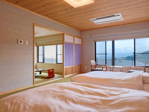 ・壮大な日本海が一望できる海側の二間続きの広々和洋室。