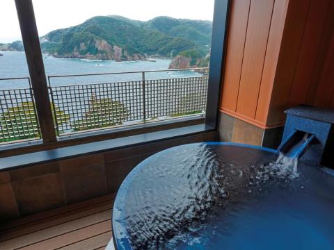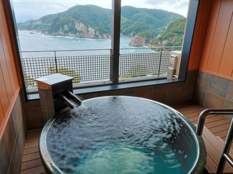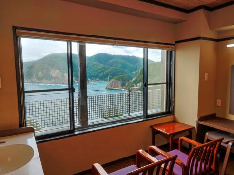 眼下に広がる日本海が一望出来るオーシャンビュー和室。(バス付)