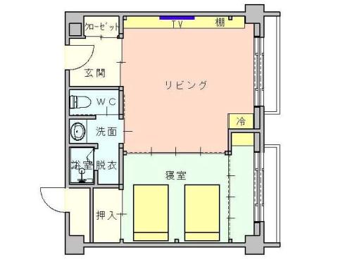 ツインベッド・和室・バス・トイレ・60平方メートル